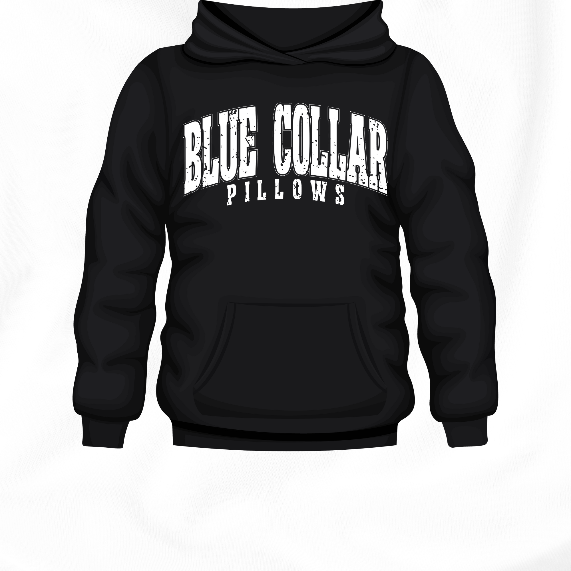 BLUE COLLAR PILLOWS DTF LOGO ON A CREWNECK, HOODIE, T SHIRT.. LIGHT COLORS WILL BE BLACK LOGO. DARK COLORS WILL BE WHITE LOGO.