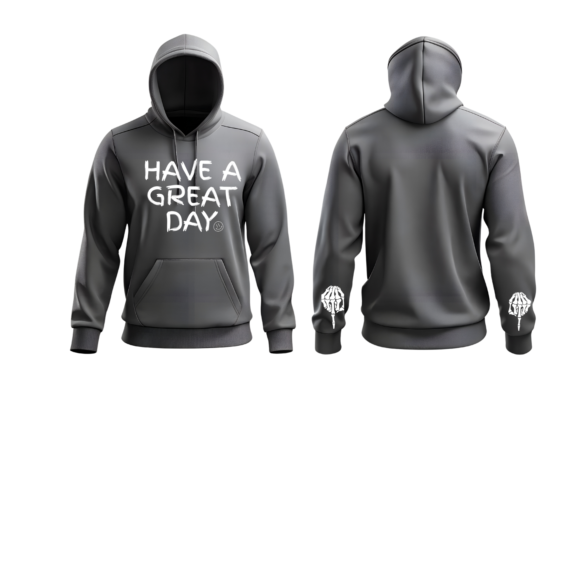 GILDAN HOODIE WITH DTF PRINT " HAVE A GREAT DAY " AND SKULL MIDDLE FINGERS